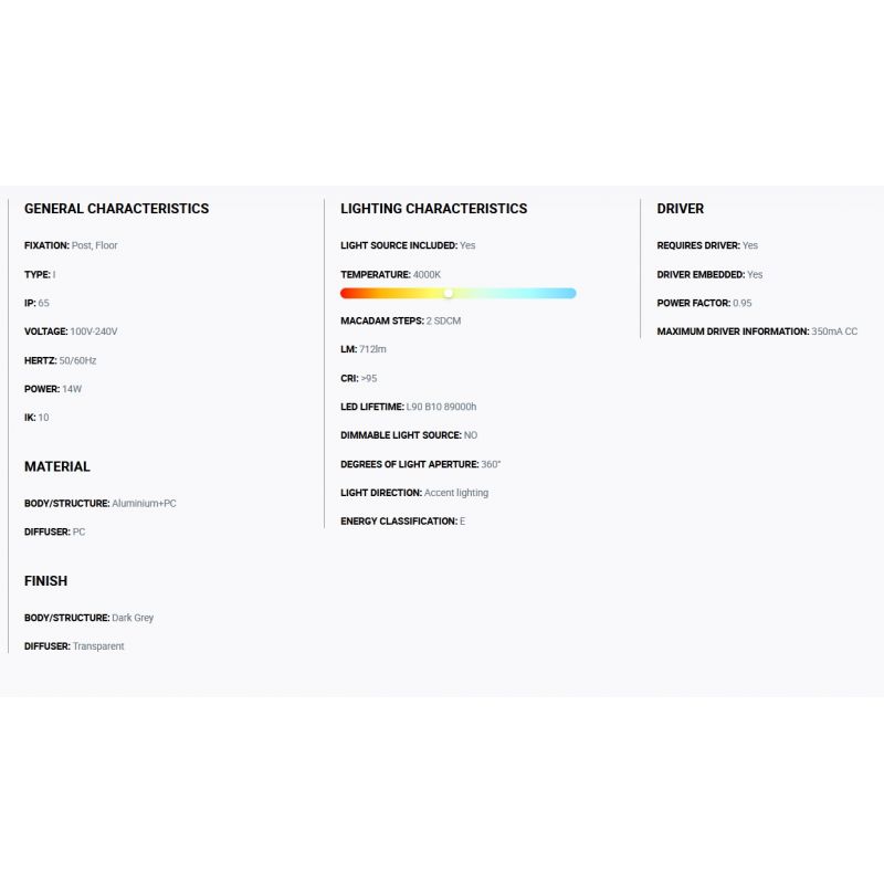 Materiale | aluminiu gri inchis, difuzor Policarbonat transparent |