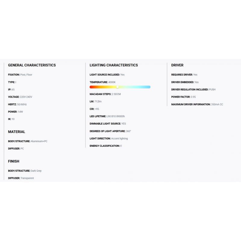 Materiale | aluminiu gri inchis, difuzor Policarbonat transparent |