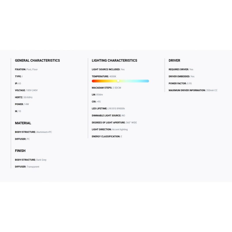 Materiale | aluminiu gri inchis, difuzor Policarbonat transparent |