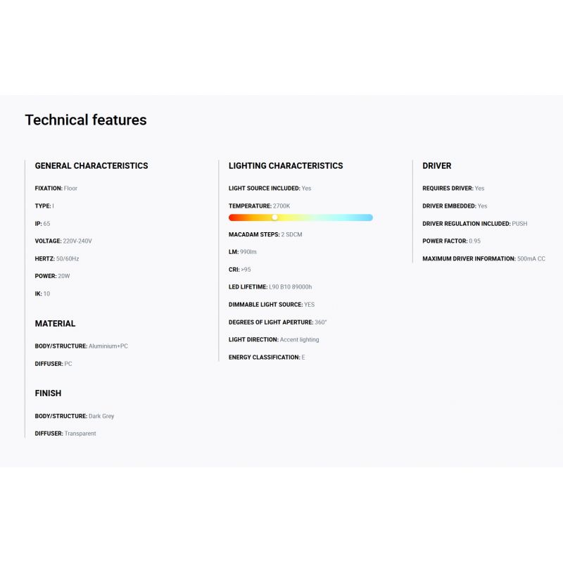 Materiale | aluminiu gri inchis, difuzor Policarbonat transparent |