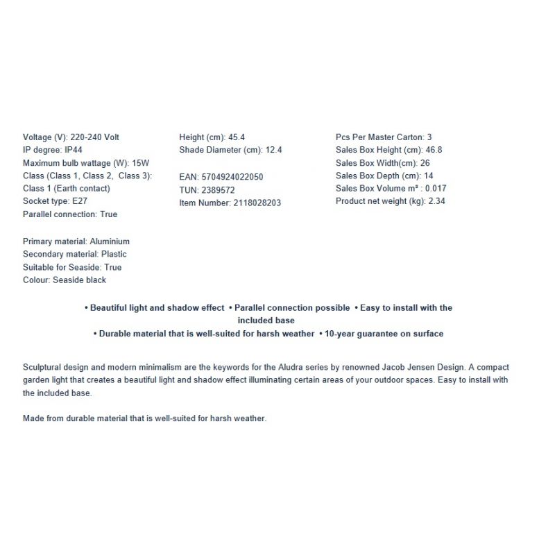Informatii produs: | lampa de exterior cu protectie la umiditate IP44, usor de instalat cu baza inclusa |