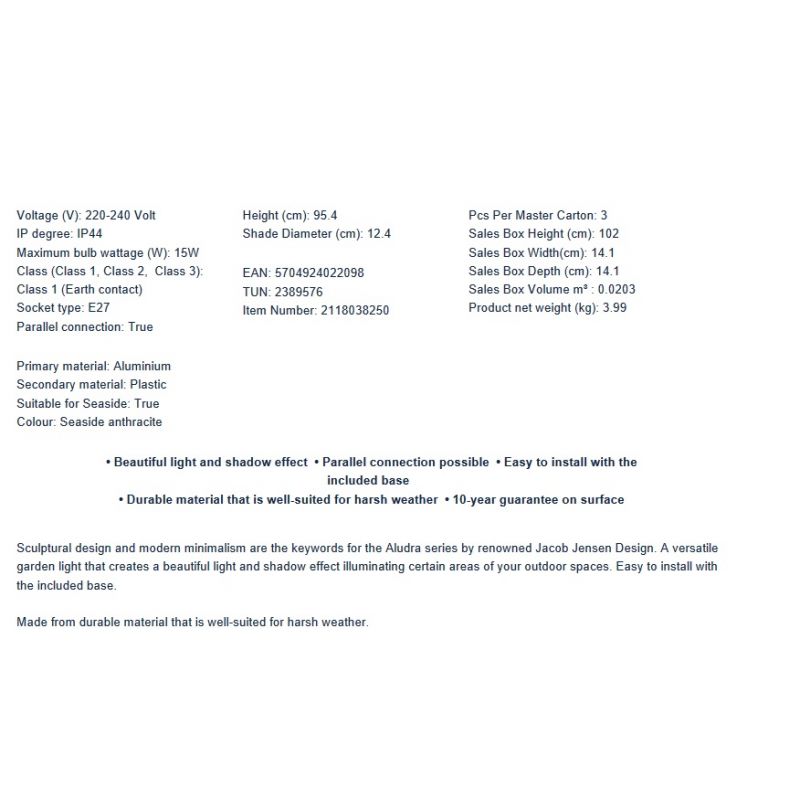 Informatii produs: | lampa de exterior cu protectie la umiditate IP44, usor de instalat cu baza inclusa |