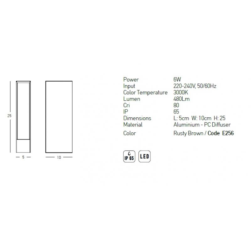 | Materiale | aluminiu finisaj maro rustic, difuzor PC |