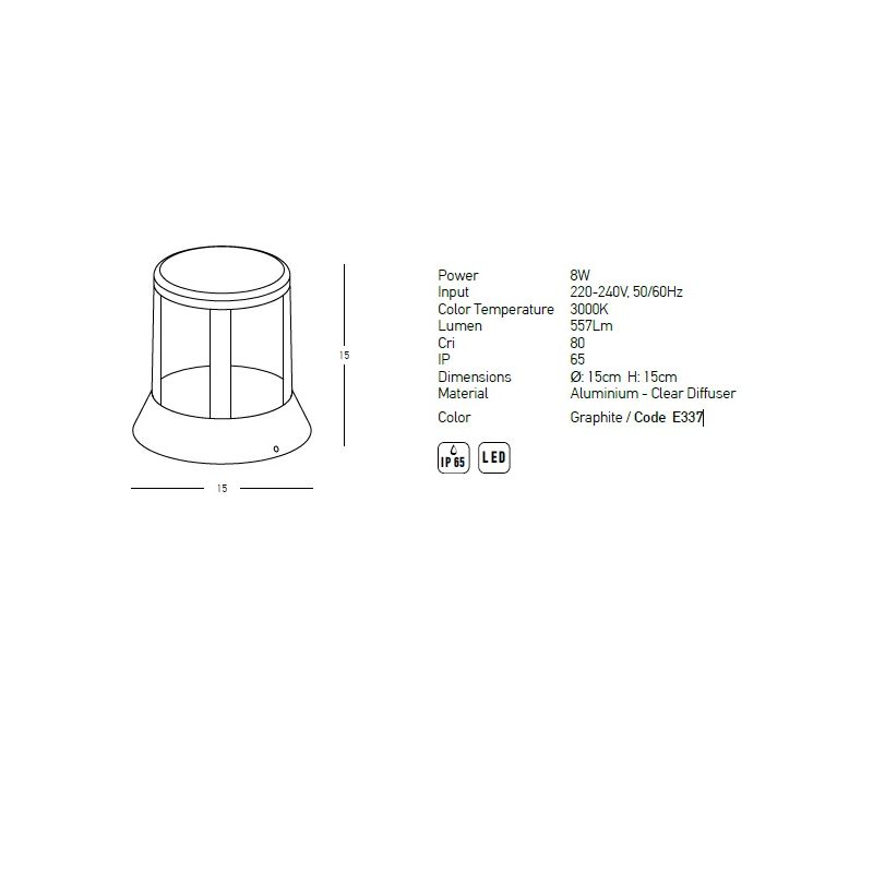 | Materiale | aluminiu finisaj grafit, difuzor transparent |