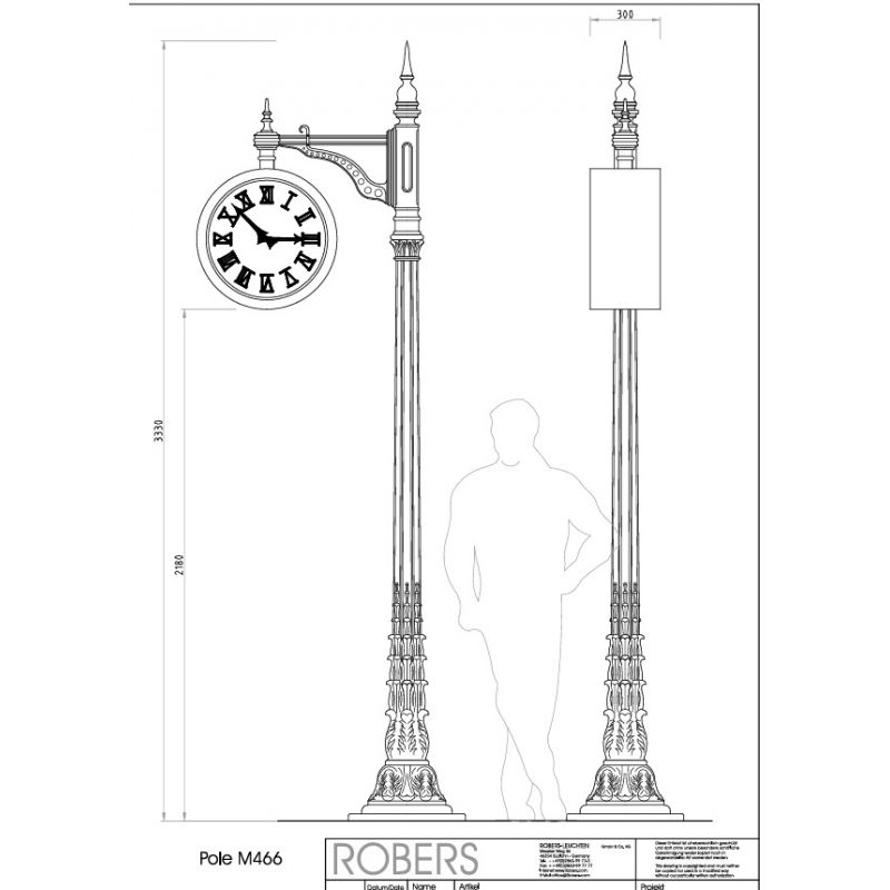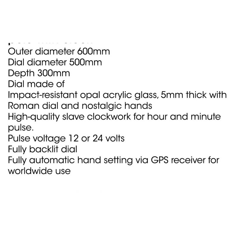Materiale | fabricat manual (disponibil in diferite finisaje), ceas de exterior cu cadran pe ambele parti si iluminare din spate cu sticla acrilica rezistenta de 5mm grosime |