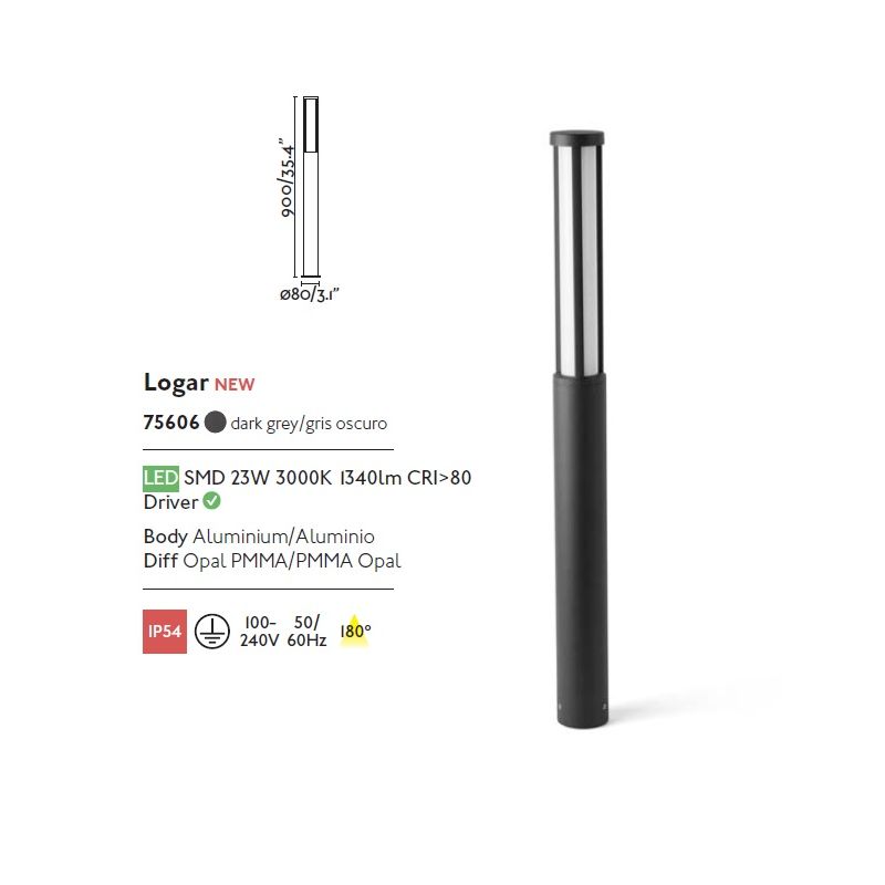 Stalp LED pentru iluminat exterior, cu design simplu și modern lampa este ideală pentru iluminarea zonelor de trecere din curte, terasa și gradina, fiind un corp de iluminat cu protectie mare la umiditate de IP54.