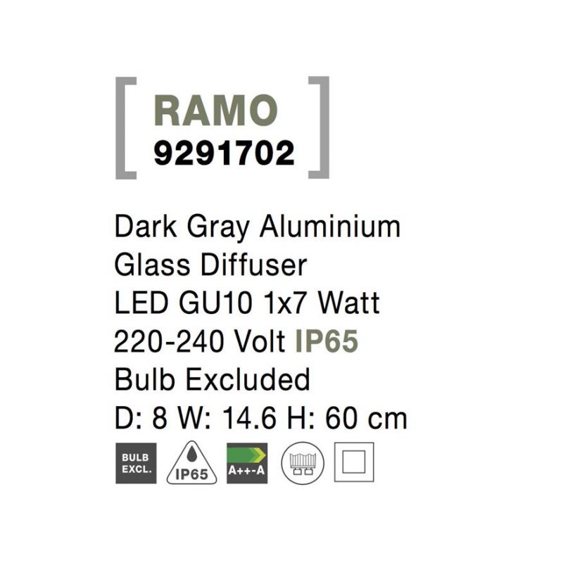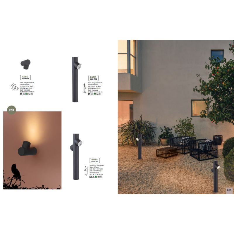 Stalp pentru iluminat exterior IP65 RAMO, lampa moderna de exterior ideală pentru iluminarea zonelor de trecere din curte, terasa și gradina, fiind un corp de iluminat cu protectie la umiditate ridicata.