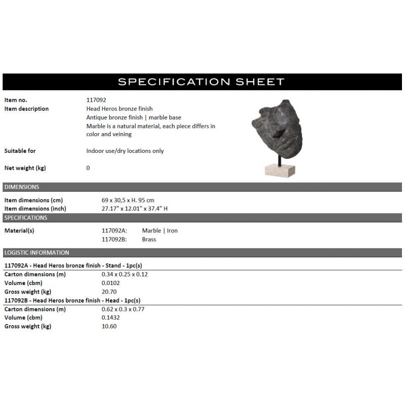 | Culoare | bronz antichizat, suport din marmura |