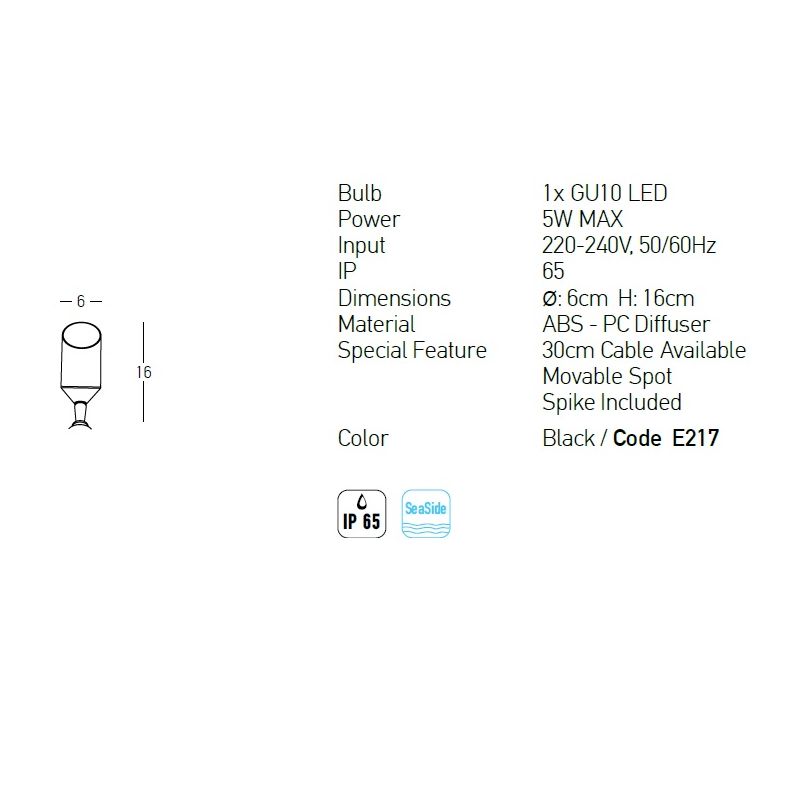 Dimensiuni | diametru spot:6cm; inaltime corp:16cm, cablu alimentare:30cm |