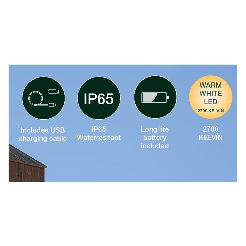 Designul simplu și formele moi fac din Sponge o serie incredibil de elegantă, potrivită în interiorul și exteriorul casei. Cu bateria încorporată, Sponge poate fi plasat și mutat după cum doriți, în copacul din grădină cu șnurul inclus sau așezați-l direct pe terasa, simultan, luminozitatea luminii poate fi reglată pe trei niveluri. Bateria are o durabilitate de până la cinci ore la o putere maximă și chiar mai mult dacă lumina este redusă la un iluminat confortabil. Bateria se încarcă cu ușurință prin intermediul cablului USB inclus.
