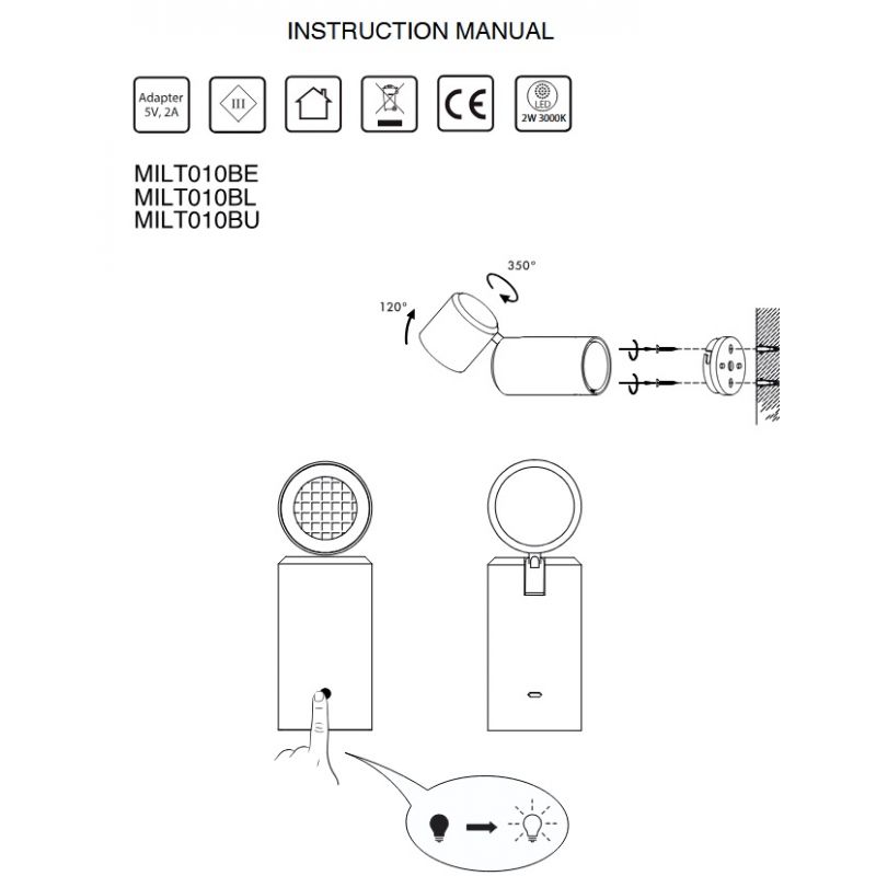 | Informatii produs: | Lampa cu baterii pentru perete sau portabila, baterie reincarcabila, variator manual in 3 trepte, spot directionabil. |