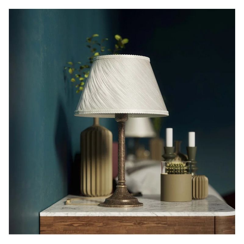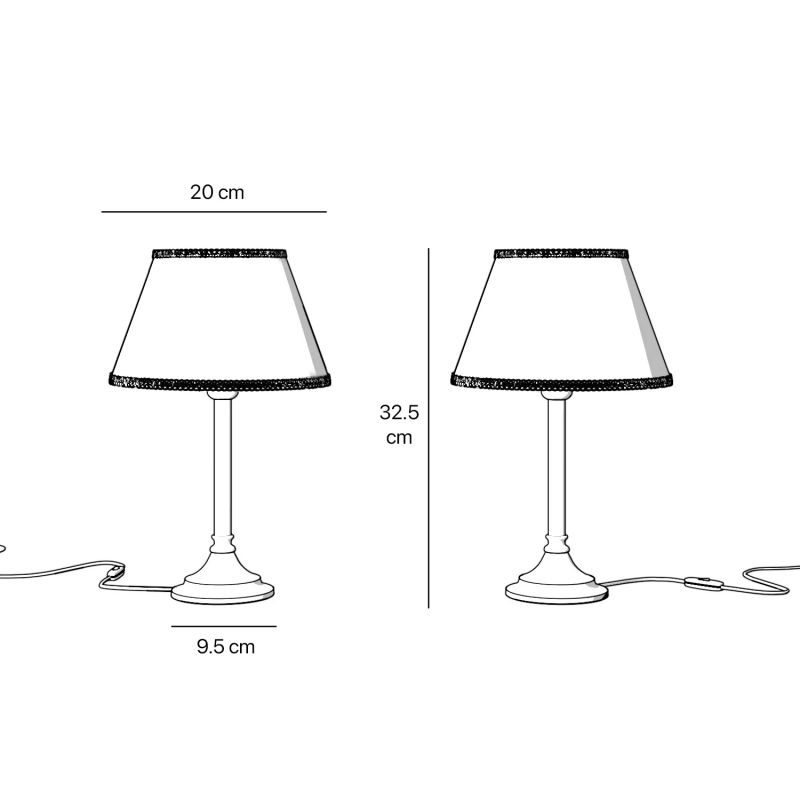 | Materiale | alama disponibila in finisaj OAS (Antique Brass) sau OBS (Bronze Satin Brass), abajur textil ivory |