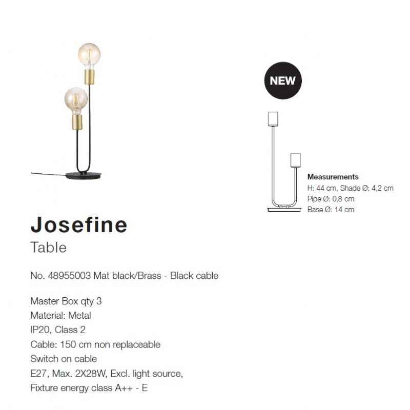 Designul inovator și jucăuș face din gama Josefine o serie decorativă modernă. Tubul rigid contribuie la o expresie industrială cu asocieri intre un decor dur și modern. În contrast cu expresia industrială sunt detalii frumoase din alamă și forme moi, care echilibrează minimalismul și eleganța. În plus, seria Josefine permite personalizarea camerei prin utilizarea de lumini decorative.