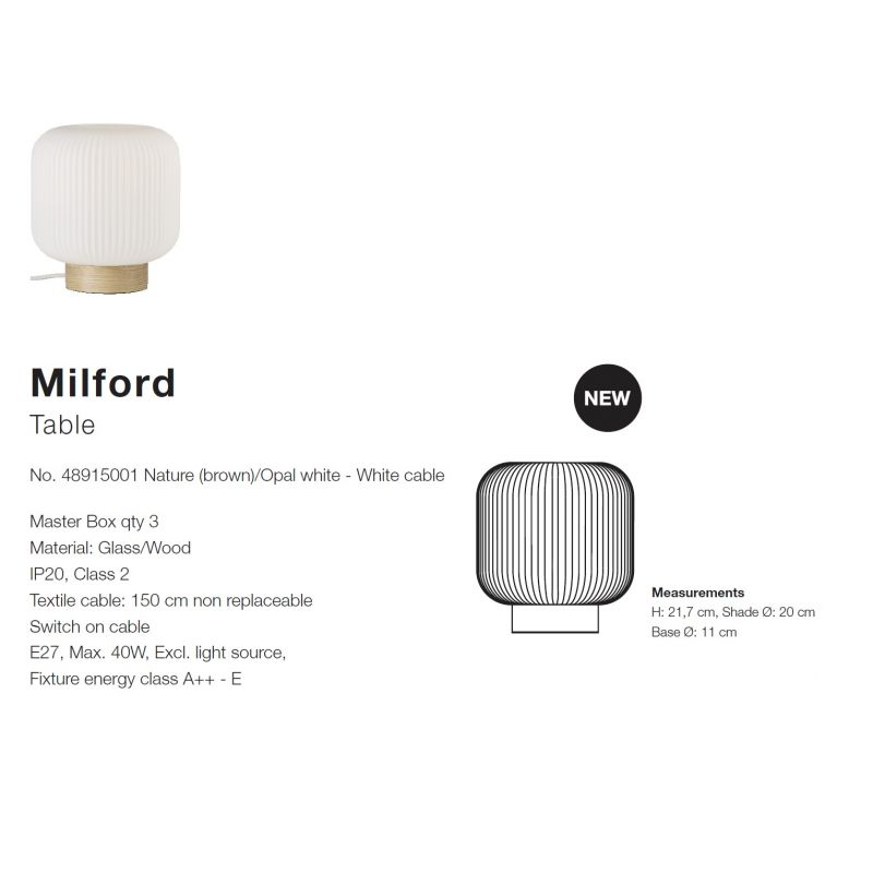 Colectia de corpuri iluminat Milford reflecta stilul scandinav, seria de lampi este extrem de decorativa, combinatia dintre formele sale organice si sticla opala reda un aspect particular deosebit de elegant, conferind decorului un accent expresiv nordic în orice interior.