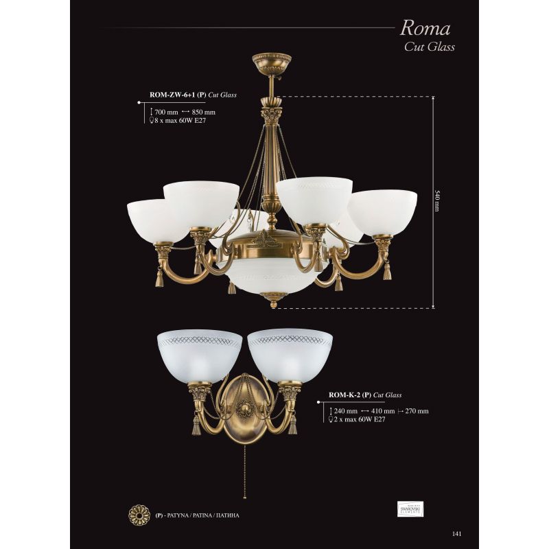 | Descriere | metal alama finisaj patinat (P), cristal, abajur din sticla -cut glass- |