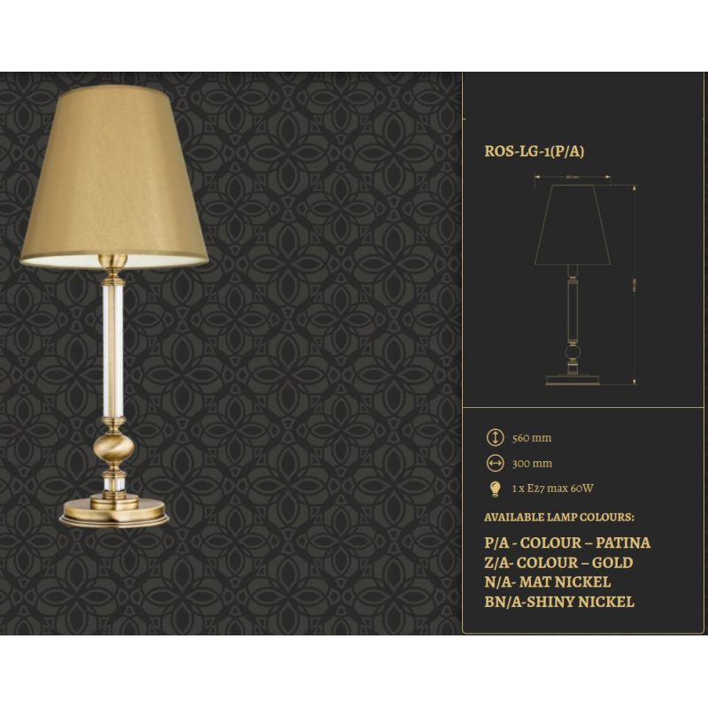 | Descriere | metal alama disponibil in 4 finisaje alama patinata (P), alama finisaj nickel antic (N), nickel lucios (BN) sau alama polisata (Z), abajur textil disponibil in diferite culori |