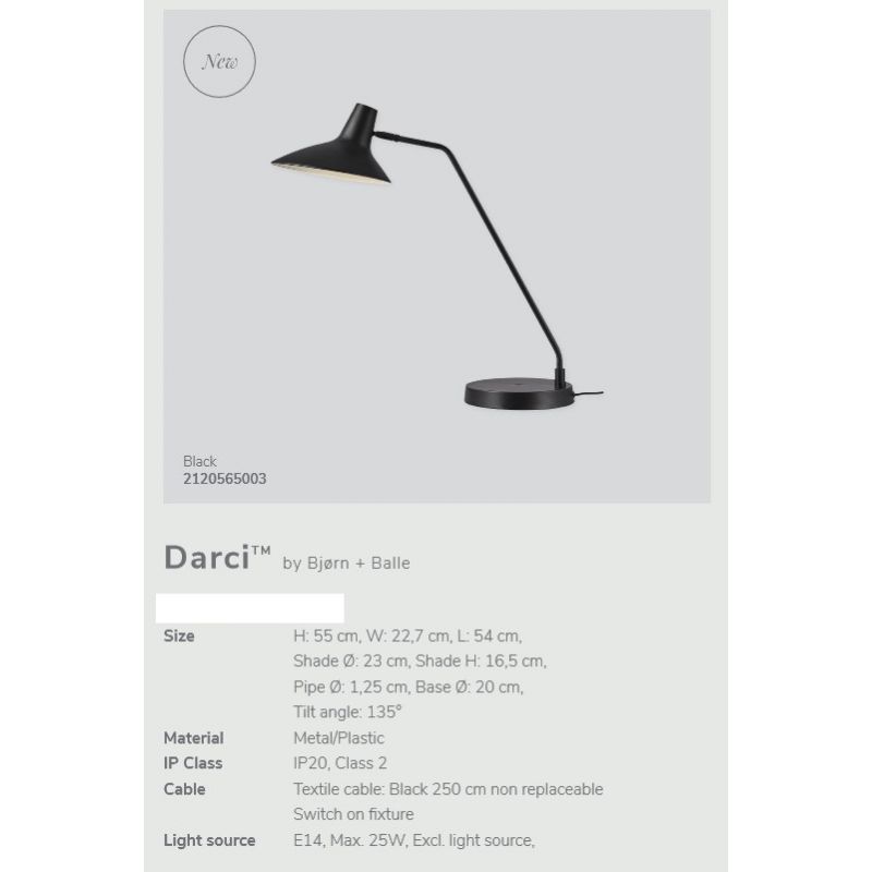 Cu un design răcoros și industrial, seria Darci de la Bjørn + Balle este atât o completare funcțională, cât și estetică pentru casa ta. Capul lămpii frumos curbat este ușor de reglat, indiferent dacă aveți nevoie de el pentru lectură, lucru sau doar pentru a adăuga ambianța potrivită camerei. Materialele de înaltă calitate, cu o suprafață moale satinată, mată, radiază un aspect modern și raționalizat. O filă ușoară de pe comutatorul tactil aprinde și stinge lampa.