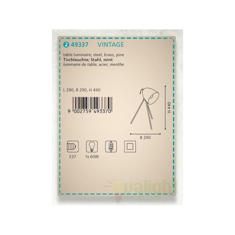 | Putere | 1x60 Watt E27, bec exclus din pret |