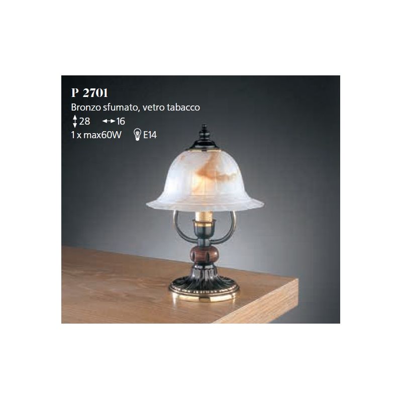| Descriere | alama masiva finisaj bronz fumuriu inchis, lemn, abajur din sticla alba cu tenta maro |
