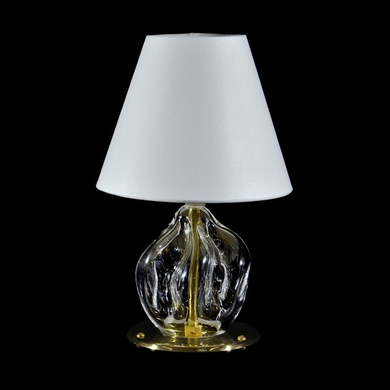 | Materiale | sticlă transparenta, abajur textil alb, metal finisaj alama lucioasa, cablu 1,5m cu stecher |
